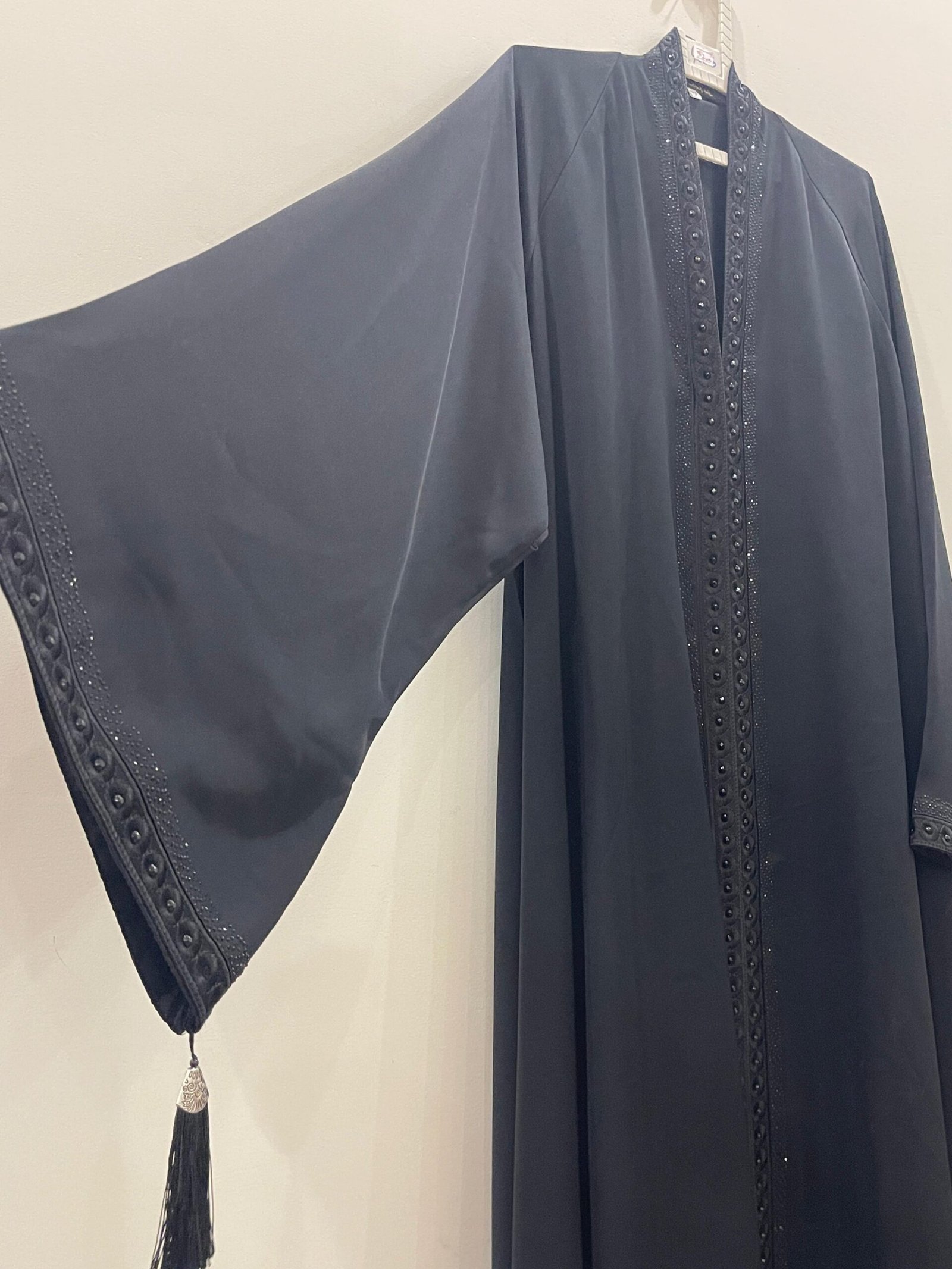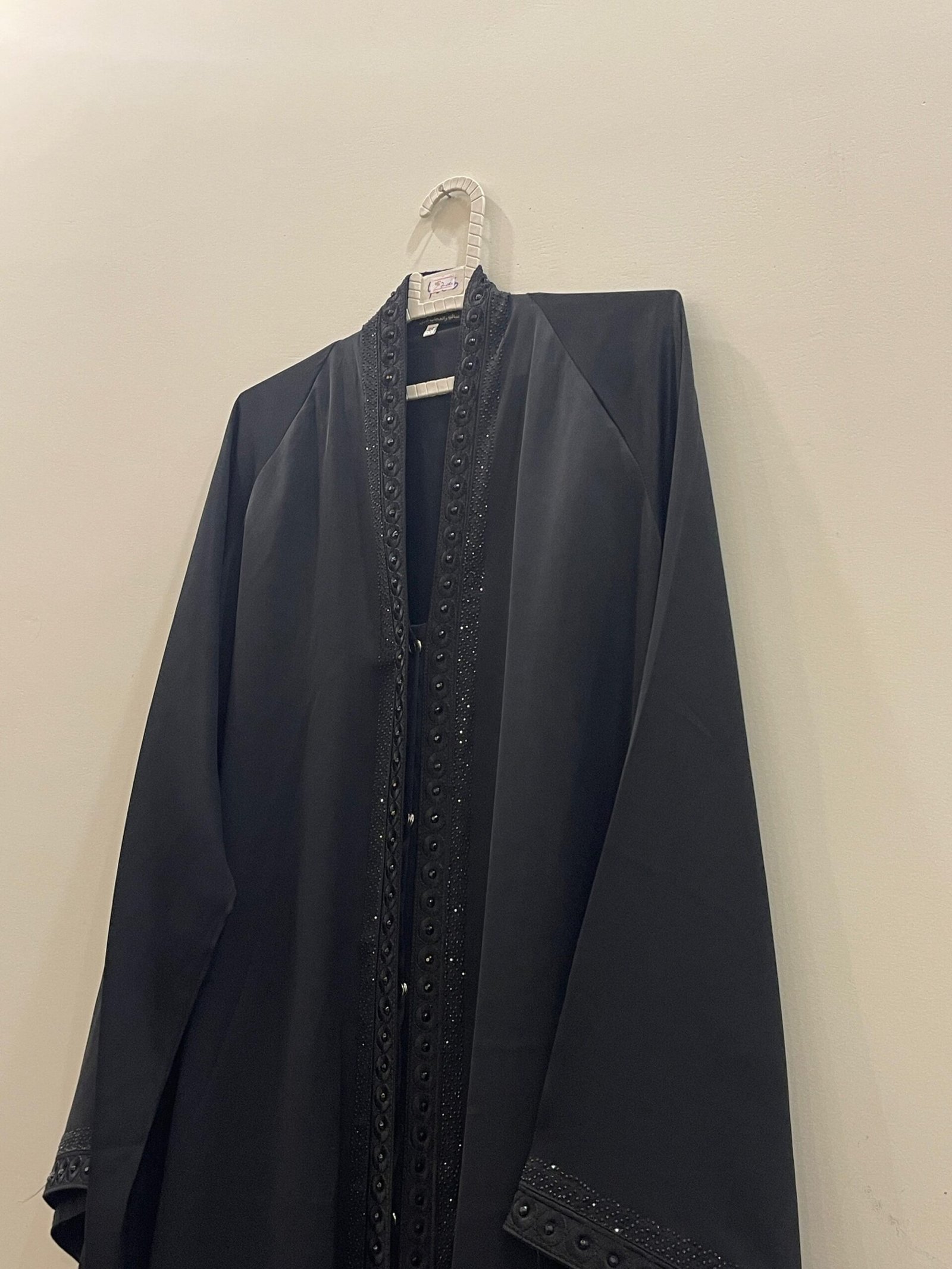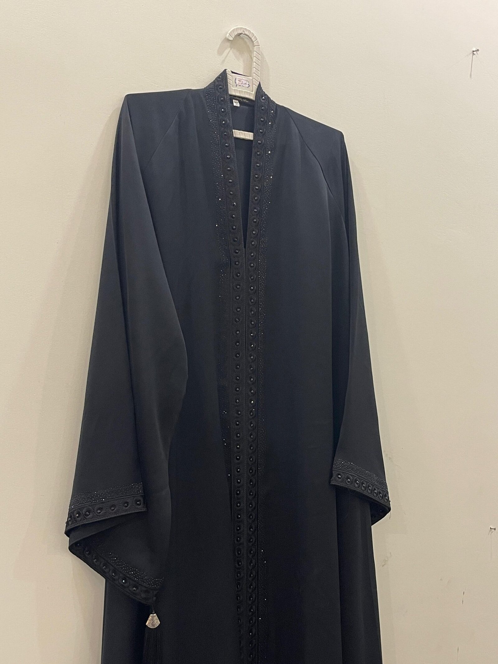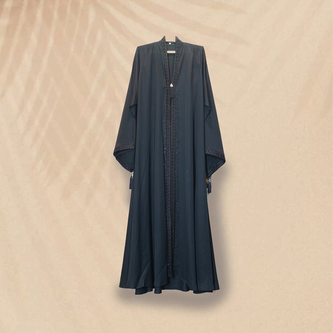The Moonstone Black Abaya is crafted from premium Nida fabric, offering a smooth and elegant drape for a luxurious feel. Featuring intricate embroidery along the front and sleeves, this abaya combines timeless sophistication with everyday comfort. The front button closure adds ease of wear, making it an ideal choice for both casual and formal occasions.
