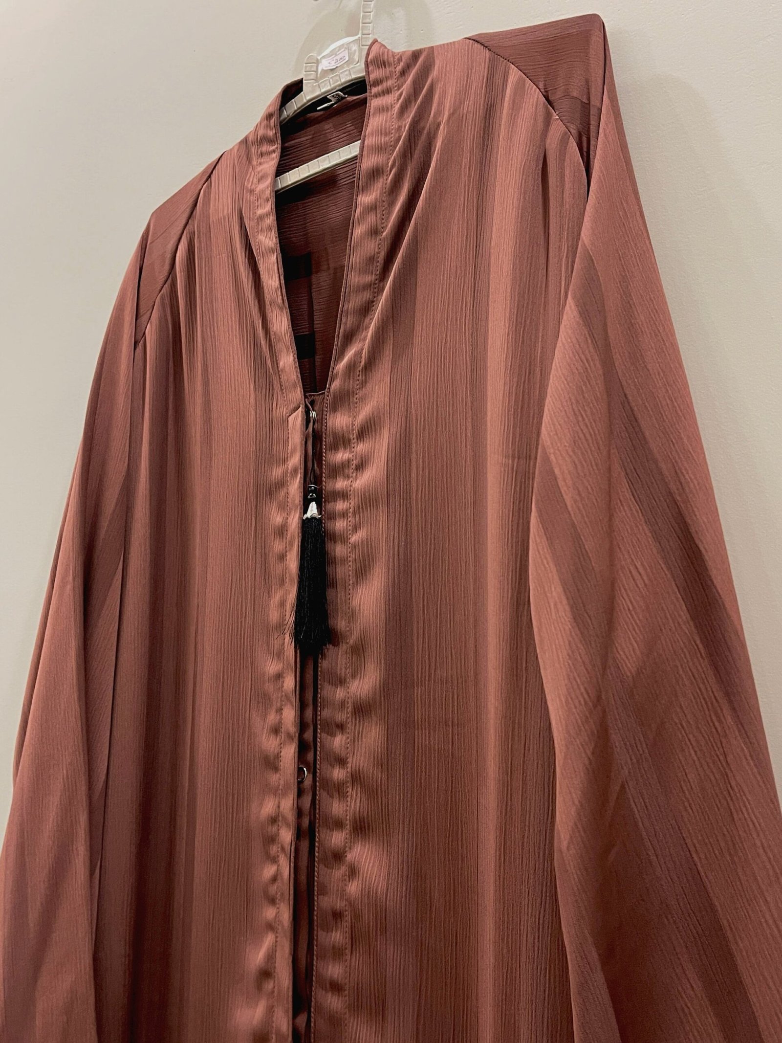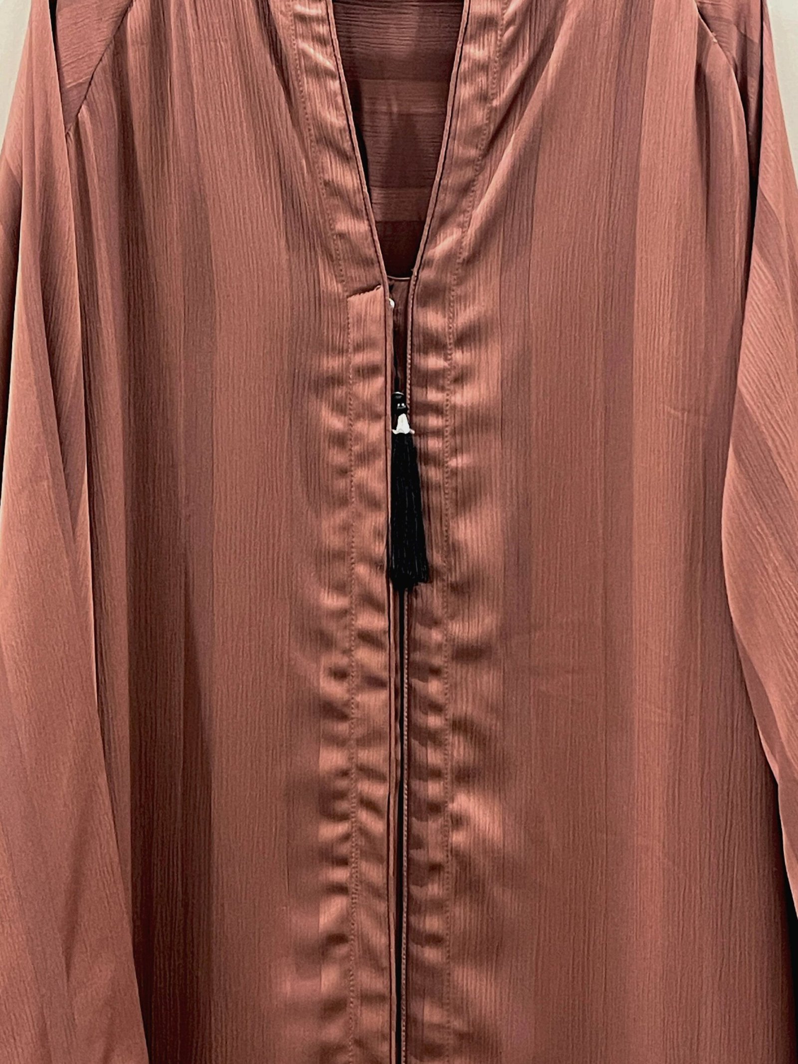 Introducing the Strata Abaya, a garment that elegantly combines comfort with refined design.