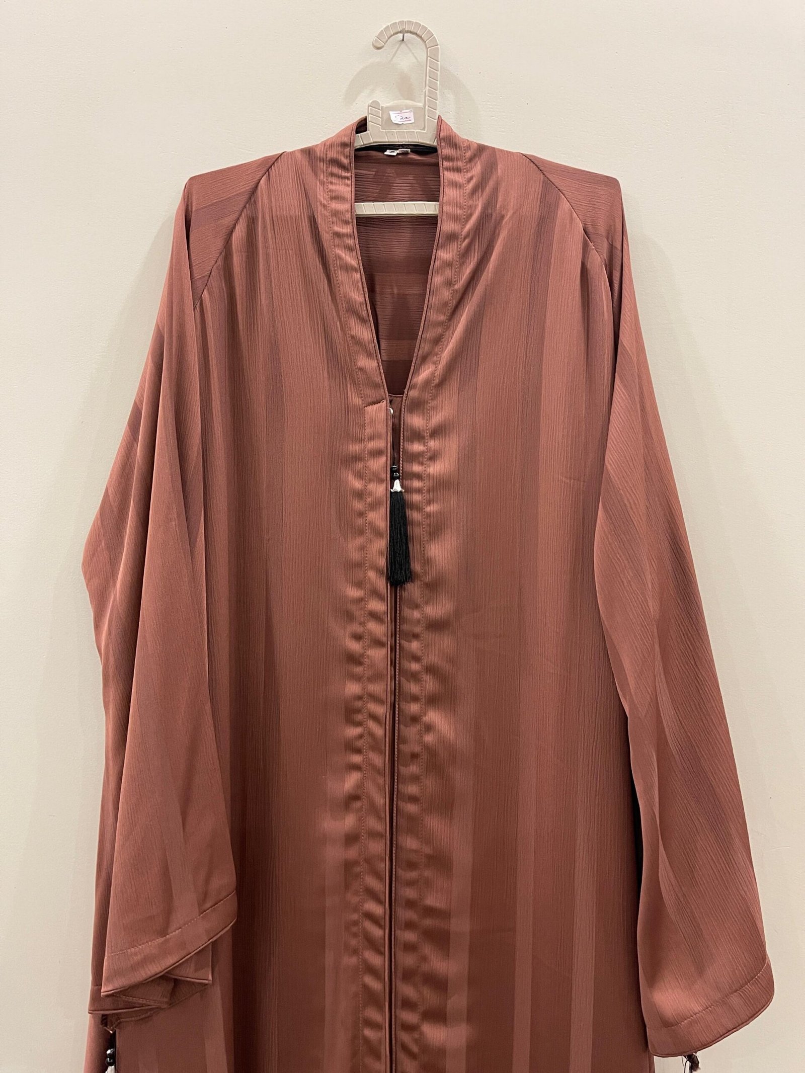 The Strata Abaya is an ideal choice for the modern woman seeking a blend of subtle glamour, comfort, and unique design.
